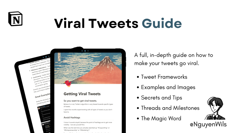 I even included viral tweet ideas and frameworks for you to follow so you don't have to figure it all out by yourself.